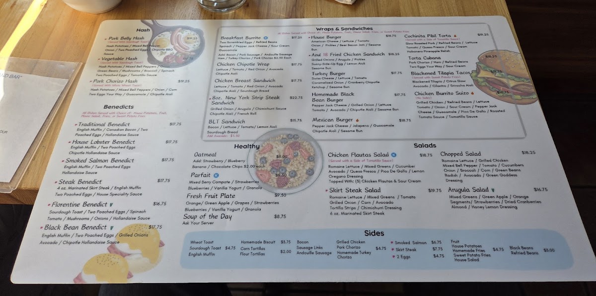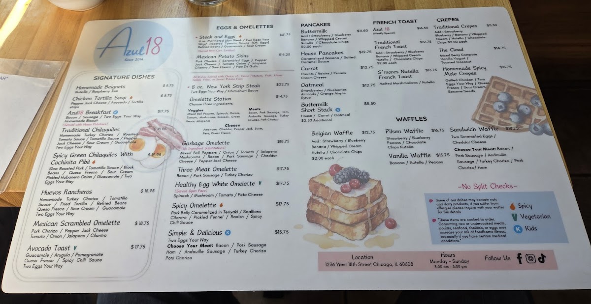 Azul 18 offers a menu that balances comforting Latin American flavors with familiar brunch and diner classics, perfect for starting the day or enjoying a relaxed midday break. The food and drink selection feels approachable, featuring both hearty and fresh options that suit a casual yet thoughtfully crafted atmosphere.