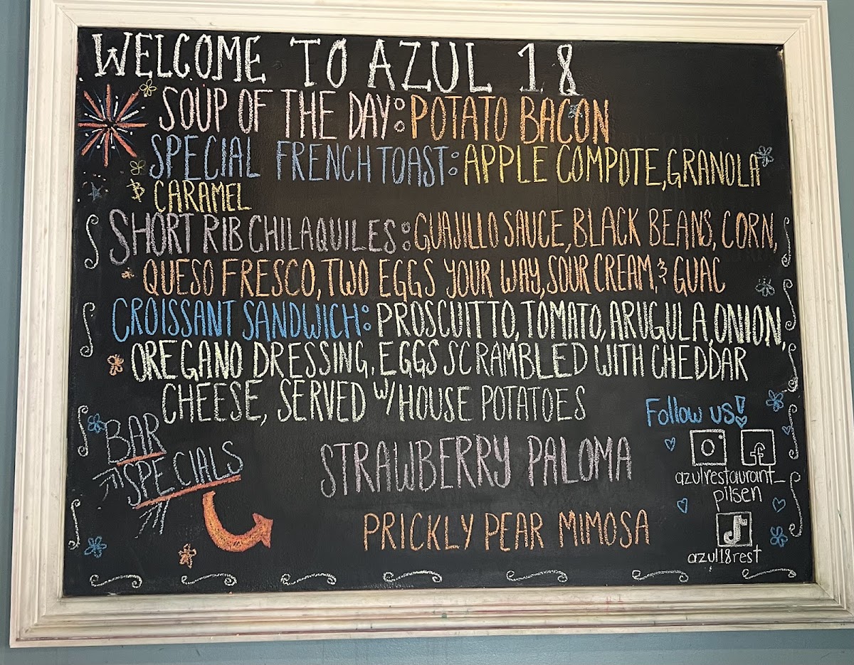Azul 18 Menu